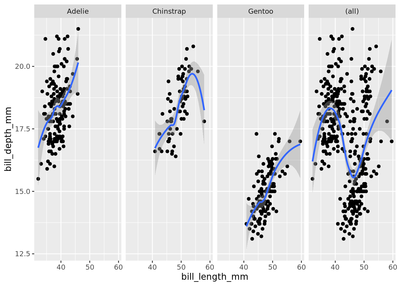 facet_grid(cols = vars(species), margins = TRUE, labeller = label_facets)